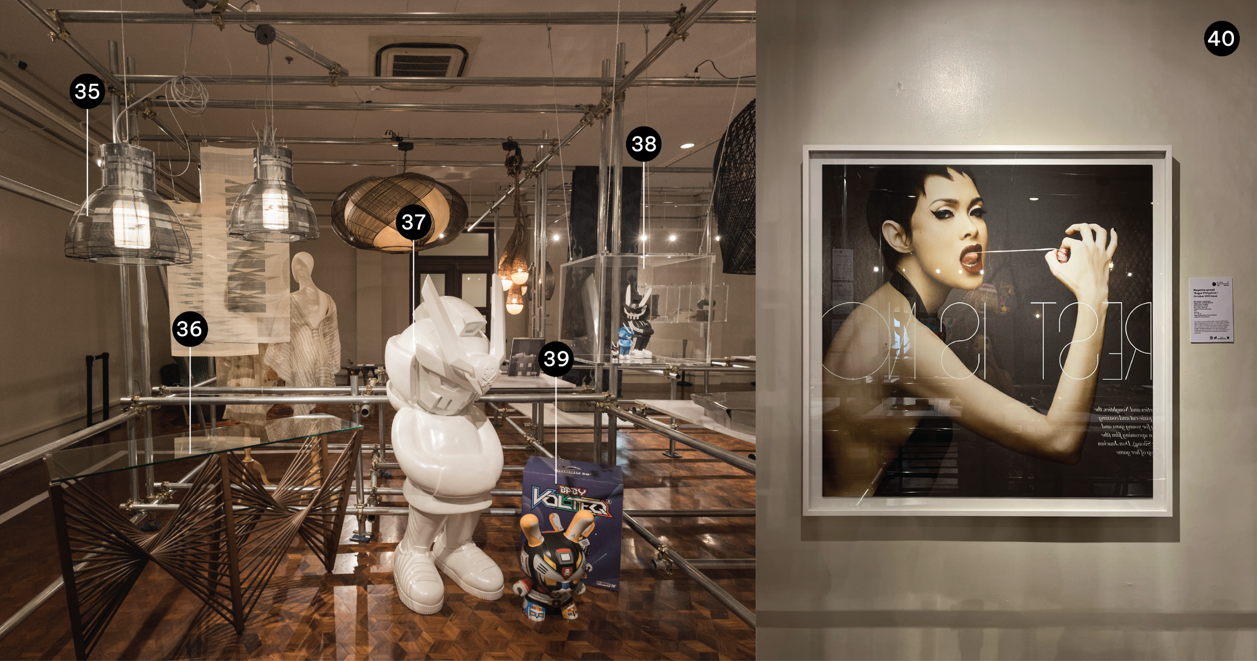 “Fifty Years of Philippine Design and Beyond” is an exhibitionary gesture by the Design Center of the Philippines on the 50th Anniversary of its foundation in 1973. It commences and anticipates other potential projects—publishing, educational material, traveling exhibitions, public discussions, and so forth—that in due course will clarify Philippine Design as a distinct ethos and aesthetic.In its present first incarnation as an exhibition, the fifty-year retrospective is a gathering of objects and images that represent striking “moments” during which radical or surprising shifts occurred in the ways designers design in the Philippines.Each selected object or image was created by change-makers; each, the arrival or refinement of ideas of how to dress homes and selves, express personality, assert identity, and give detail to reality. Through the 50 years spanning the turn of the millennium, these consist of the pivotal objects that Filipinos created and successfully introduced to daily lives locally and overseas.The objects and images are organized chronologically. They constitute a timeline that is curatorially pitched to say that the changes built one over the other, and that such cumulative change in design shaped definitions of what constitutes quality of life across sectors and classes in the Philippines and elsewhere.